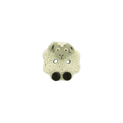 Bouton en forme de mouton blanc avec la tête grise et les sabots noirs.